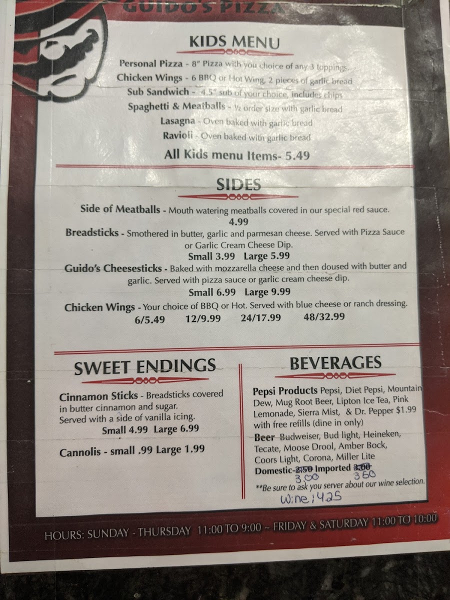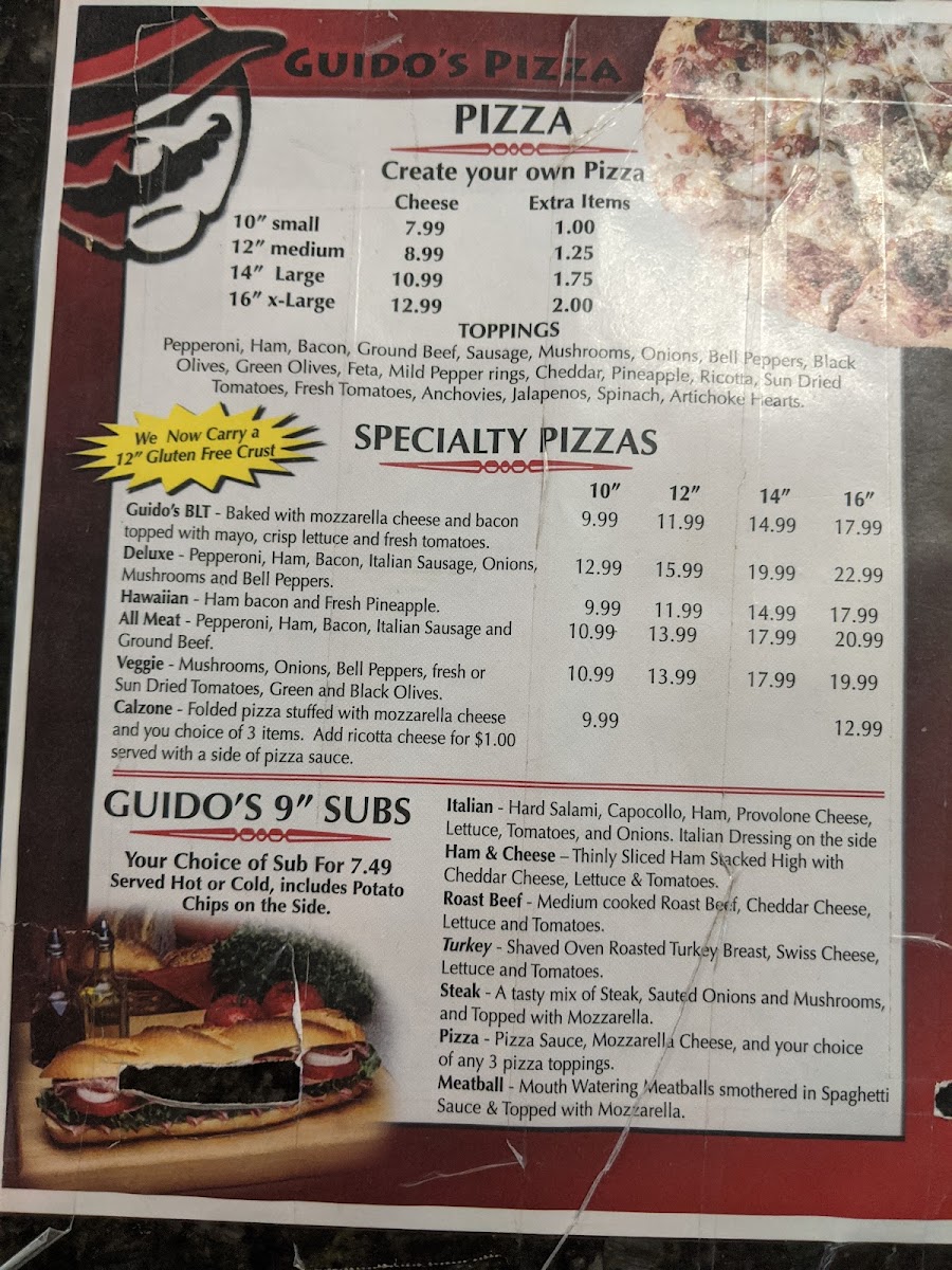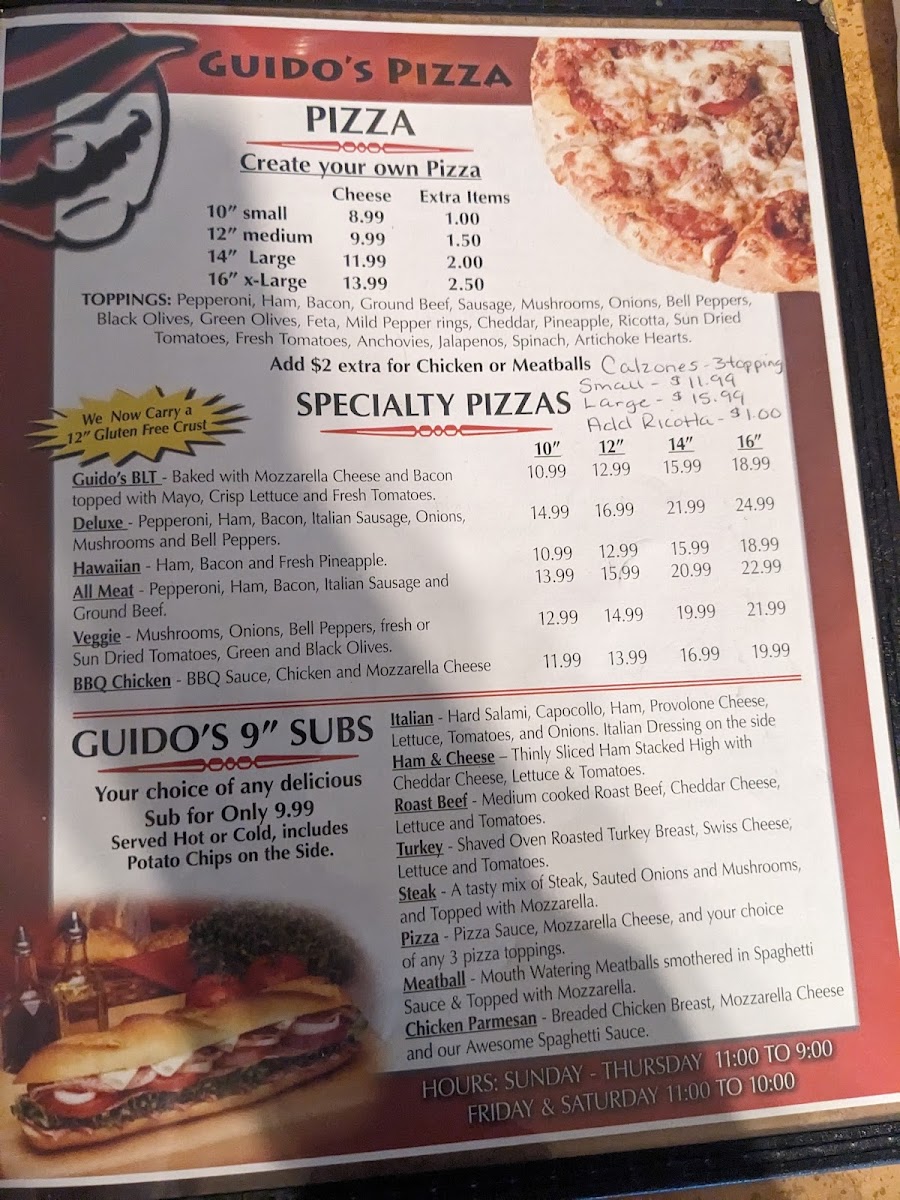 Welcome to Guido's Pizza, located in the heart of Dewey, Arizona. This cozy eatery embraces a nostalgic vibe reminiscent of classic pizza establishments from the 80s and 90s. Their menu features standout offerings like the mouthwatering Deluxe Pizza, loaded with pepperoni, ham, and more, alongside unique subs that elevate traditional flavors.